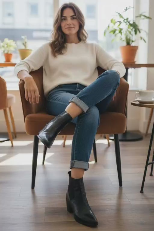 Botín en Cuero tipo croco, diseño hermoso sin cremallera , tacón de 7 cms en Madera Ancho para uso en toda ocasión sin pasar desapercibida
